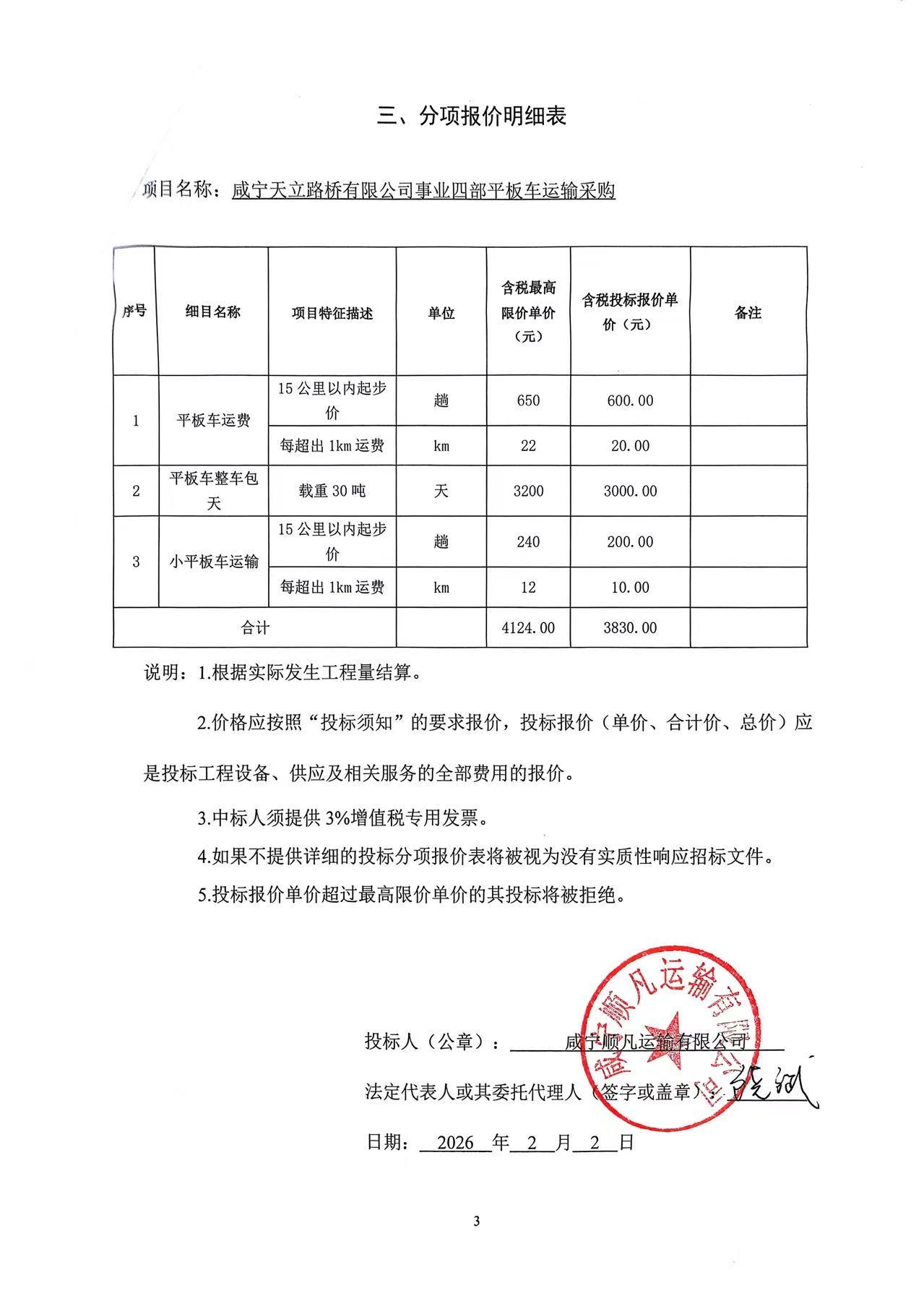 3.中標(biāo)(成交)單位:咸寧順?lè)策\(yùn)輸有限公司